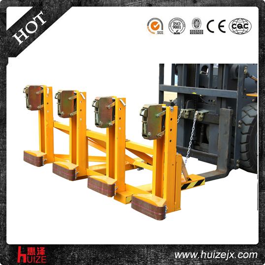 重型四油桶夾單鷹嘴DG2000A純機械機構(gòu)設(shè)計可與叉車方便地配合,僅依靠叉車的動作,不需要其它的動力,可自動一次搬運4個鋼制油桶, ?配置可拆換式柔性耐磨保護墊,有效保護油桶并緩沖叉車行駛過程中的震動, 能在集裝箱等這樣狹小的環(huán)境內(nèi)裝卸桶裝物質(zhì),可極大地提高空間利用率, 與貨叉連接配有自鎖裝置確保油桶夾在坡度上和顛簸路面使用時不會滑落.